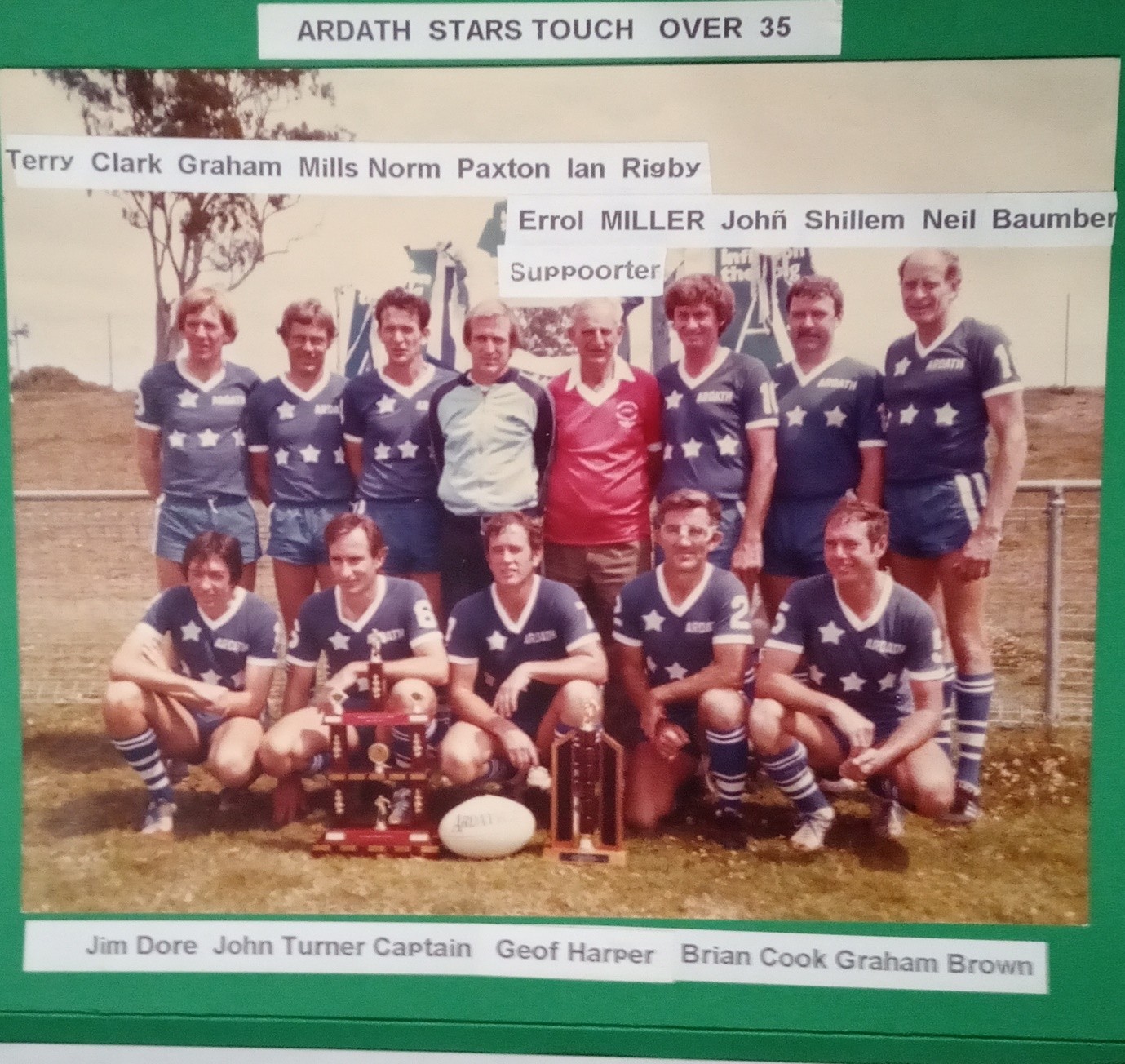 In 1980, Neil Baumer and Geoff Harper started the Ardath Stars touch football team which was based in the Sandgate area. Initially the team trained on Wednesday nights at Deagon Oval. Neil was President of Ardath Stars and Geoff was Captain. WD & HO Wills, a cigarette company which Neil worked for supplied playing uniforms for the team.